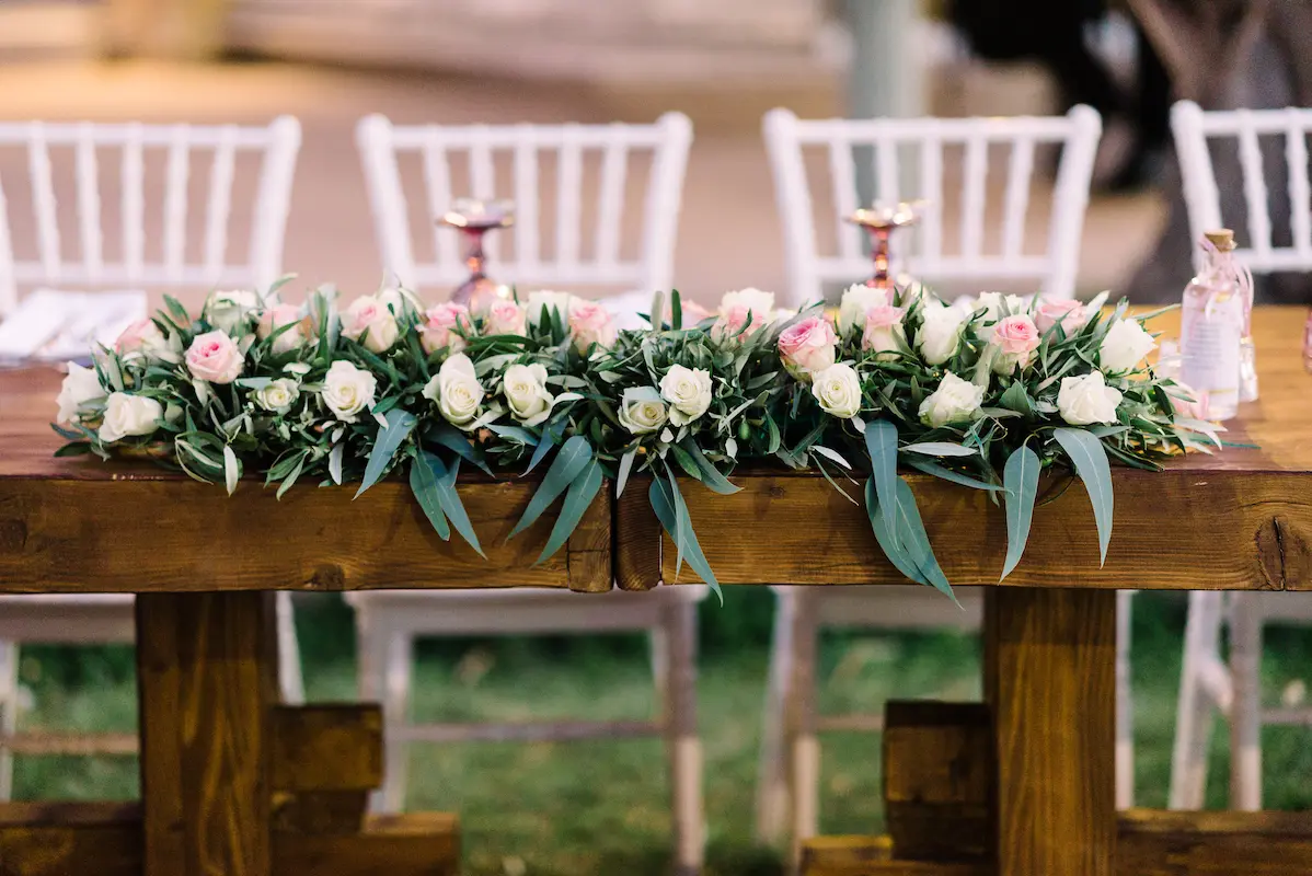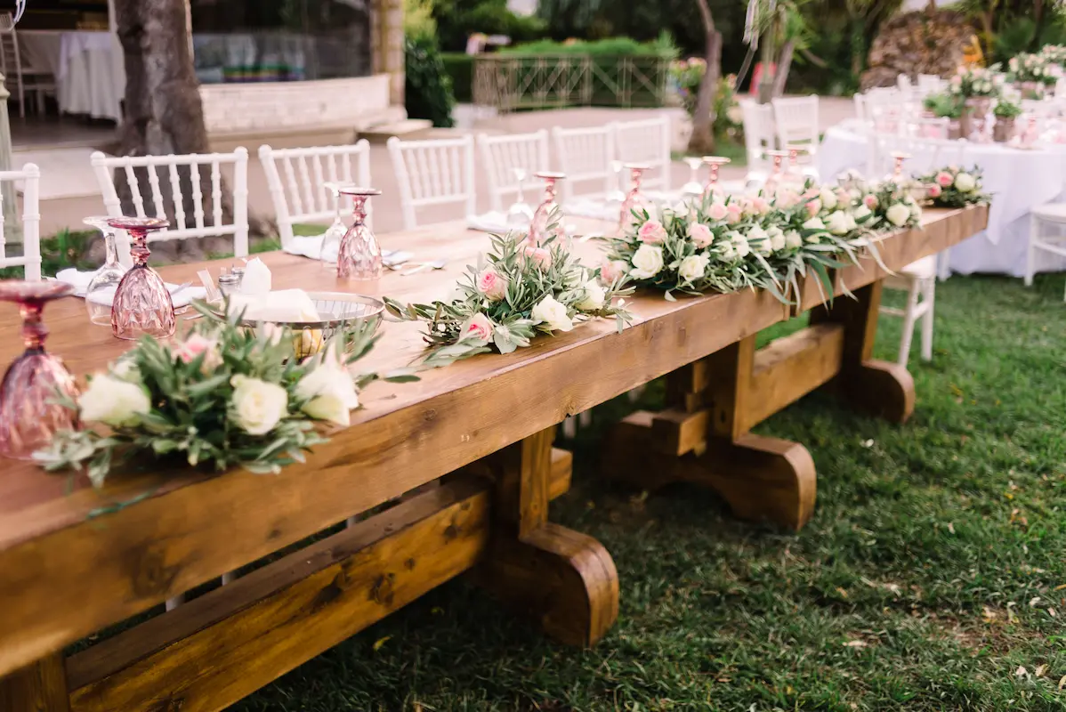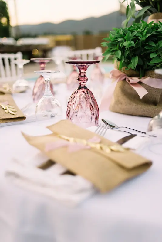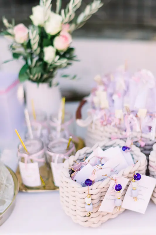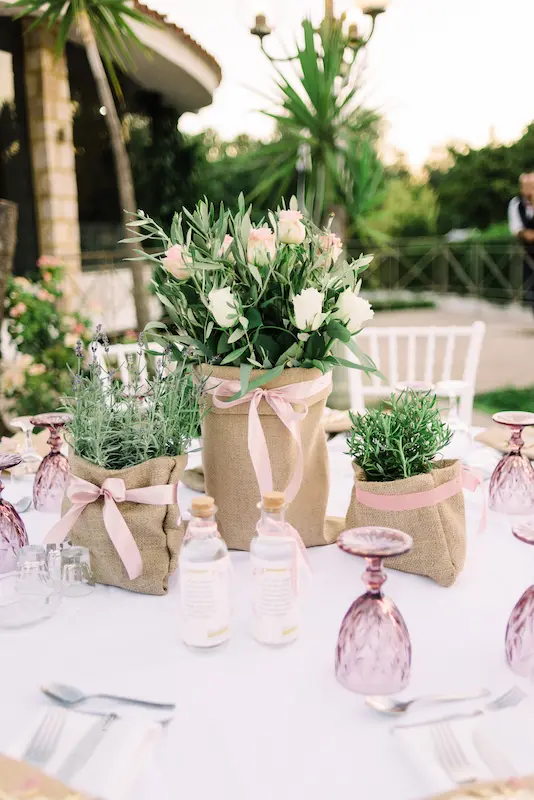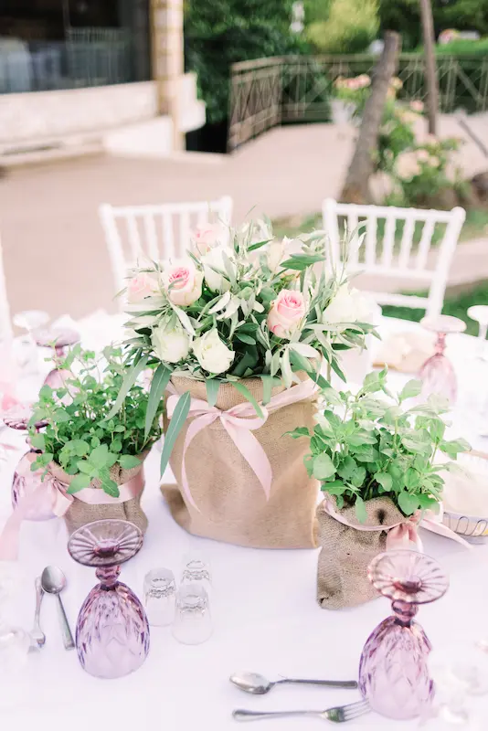The reception tables were thoughtfully decorated with small terracotta pots filled with Greek herbs ,oregano, thyme, and rosemary, offering guests a sensory experience rooted in Mediterranean tradition. The fragrance of fresh herbs, combined with the soft floral arrangements, created a setting that felt natural, elegant, and warmly inviting.