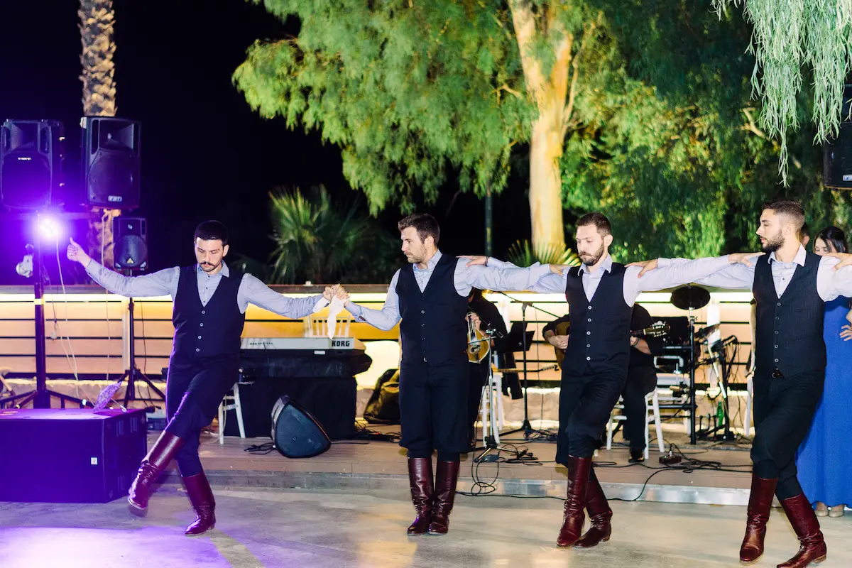 The celebration reached its peak when traditional dancers, who had traveled from Crete especially for the occasion, took the floor. Their dynamic performance captivated the guests and soon invited everyone to join, transforming the baptism into a joyful cultural celebration filled with movement, music, and heartfelt emotion.