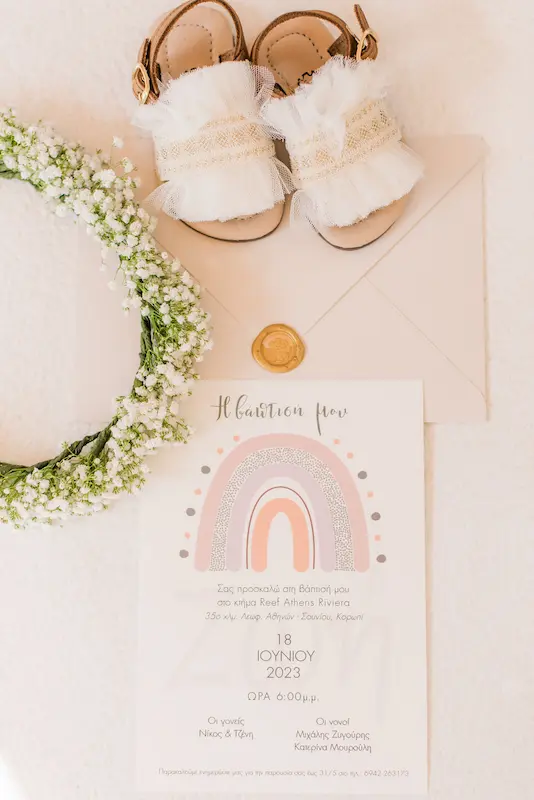 Discover the unique way little Zoi was baptized in Athens and get inspired by the vibrant rainbow theme that added joy, color, and personality to this beautiful seaside baptism.