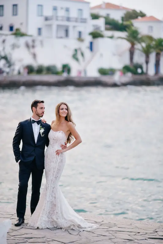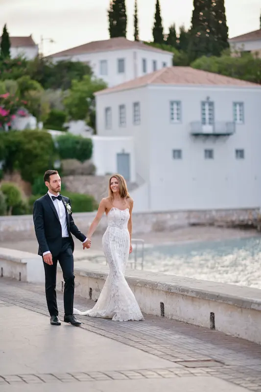 Set against the timeless elegance of Spetses Island, this fairytale wedding of Anthe and Aleks, a lovely couple who traveled from New York, beautifully blended romantic aesthetics, refined Mediterranean details, and an atmosphere of effortless authenticity.