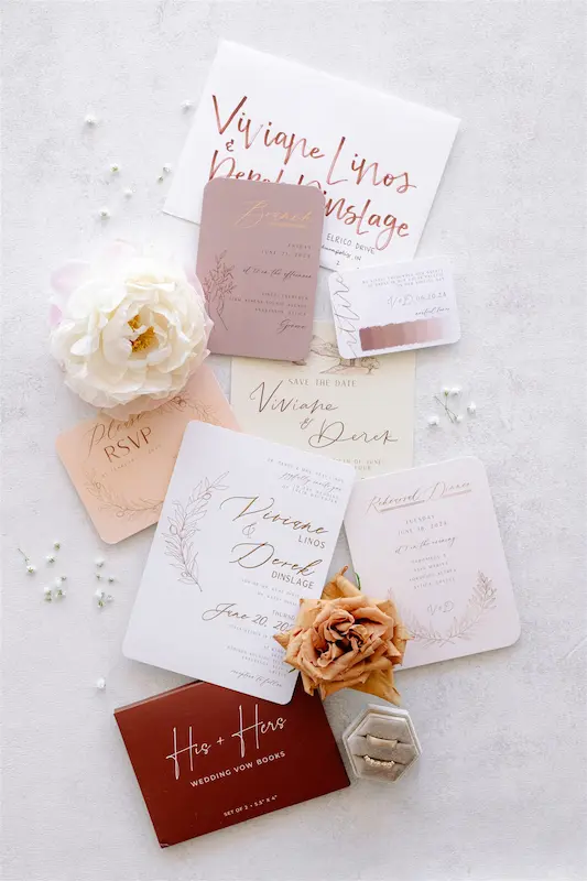 The color palette was built around soft blush tones, dusty rose, warm nude hues, ivory, and subtle touches of muted terracotta. These tones were elevated with delicate gold accents, adding warmth and understated glamour. The aesthetic felt romantic yet modern — refined without excess.