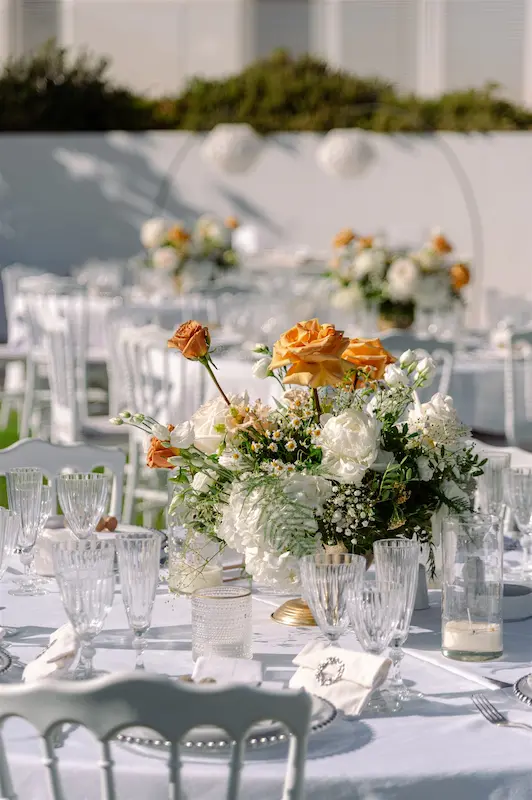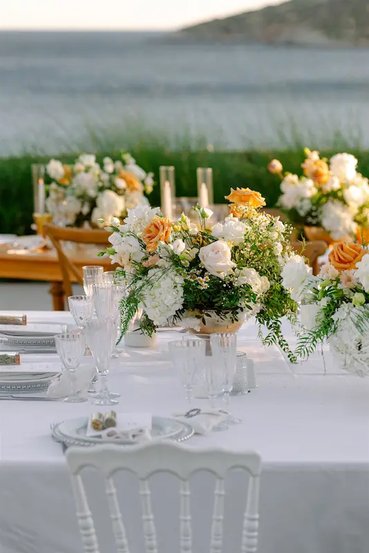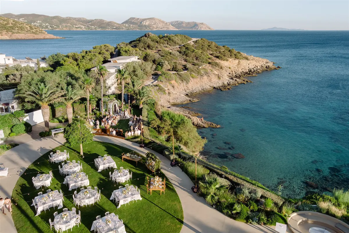 Ktima 48, one of the best wedding venues in Athens, located on the breathtaking Athens Riviera, perfectly supported this vision. With its panoramic sea views and seamless indoor–outdoor flow, the venue offered the ideal setting for an elevated and cohesive wedding in Athens Riviera, where ceremony, dinner, and celebration could unfold within one beautifully curated environment.