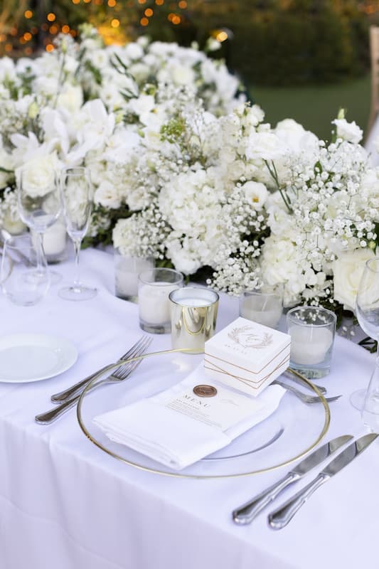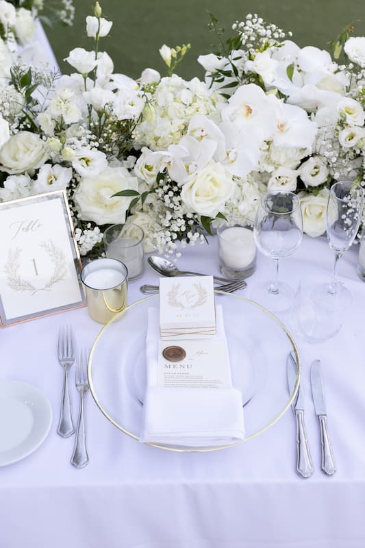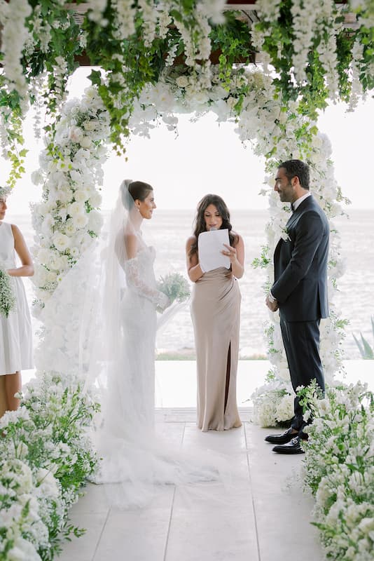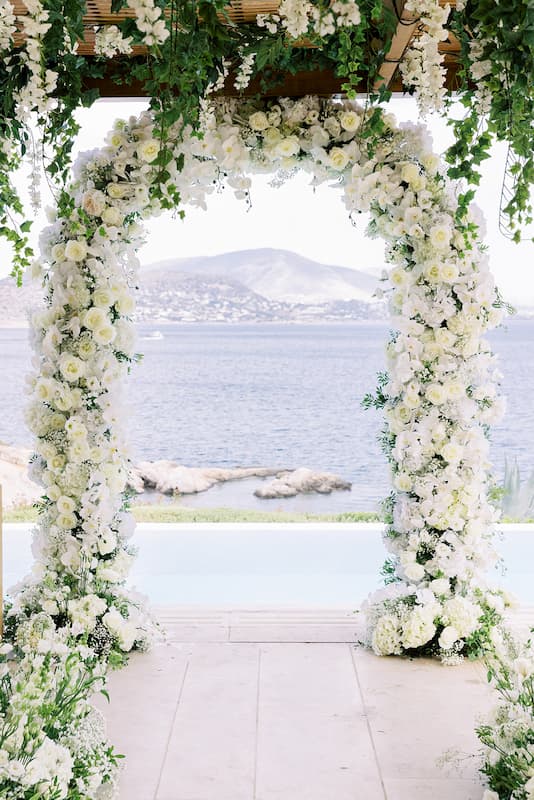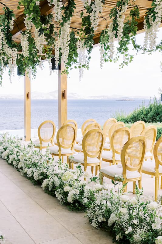 If you are picturing a classic civil wedding ceremony in Athens like Etienne and Maria, you can’t go wrong with white! This chic couple tapped into all the magic of Island Art and Taste, Private house featuring jaw-dropping vistas, pristine lawns, a swanky pool, and ample spaces to say “I do”