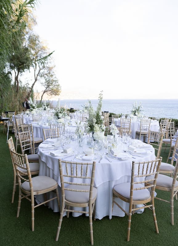 Bridal dreams meet ultimate sophistication with this throwback luxury white wedding in Athens Riviera.